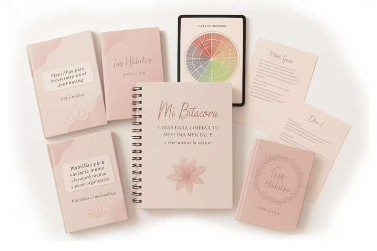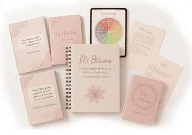 Plantillas, guías y recursos diseñados para ayudarte a organizar tu mente, cuidar tu energía y transformar tus hábitos.